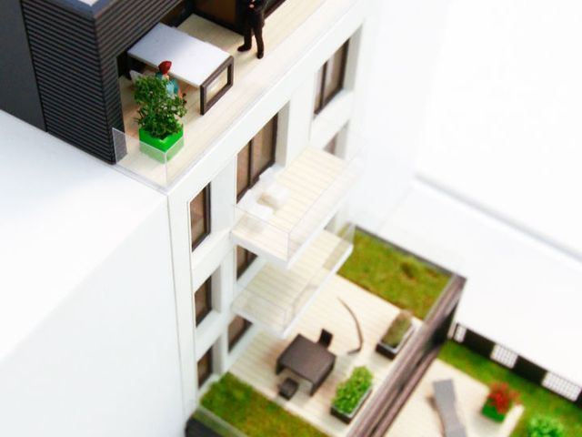 Chaque appartement dispose d'une terrasse et/ou d'un balcon avec une baie vitrée triple vitrage sur l'espace intérieur, ainsi que de sa propre cave.