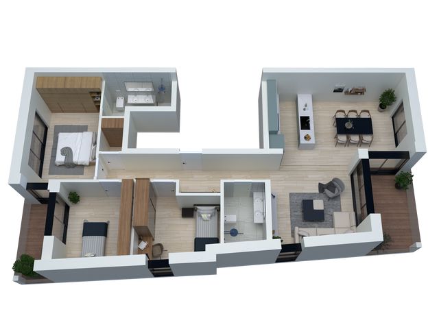 • 5 appartements 3 chambres de 96,16m2 à 131,28m2 habitables