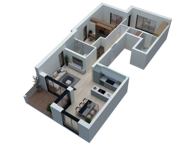 Chaque appartement dispose d'au moins une terrasse et/ou d'une loggia, ainsi que de sa propre cave incluse dans le prix de l'appartement.