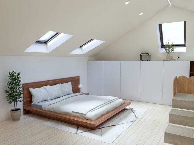 Au quatrième étage, sous les combles, vous disposez d'une surface habitable de 59,57m2 composée d'un couloir (3,02m2) qui dessert une salle douche-WC (4,53m2), trois chambres (9,37m2, 11,75m2 et 19,44m2). L'une des chambres (19,44m2) dispose d'une salle de douche-WC (5,06m2).
