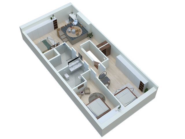 • 2 appartements 1 chambre de 55,70m2 à 58,98m2 habitables