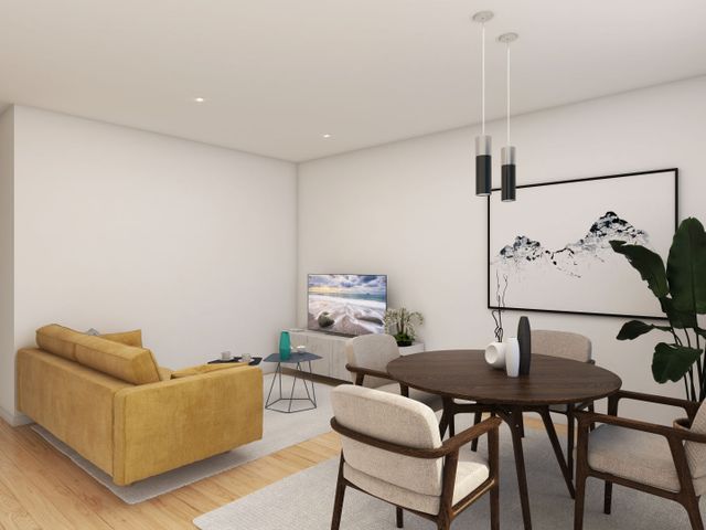 Appartement 2 d'une superficie de 59,55 m2 habitable au 2ème étage disposant d'un couloir (3,67m2), d‘une cuisine-salle à manger-séjour (23,43m2), deux chambres de 12,77m2 et 12,90m2, une salle de douche-WC (4,93m2) et une terrasse (1,23m2).