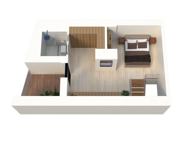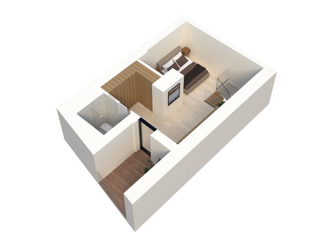 L'étage est quant à lui totalement dédié à la suite parentale : une chambre de 16,19 m2, sa salle de douche-wc de 1,91 m2 et sa terrasse de 2,53 m2.