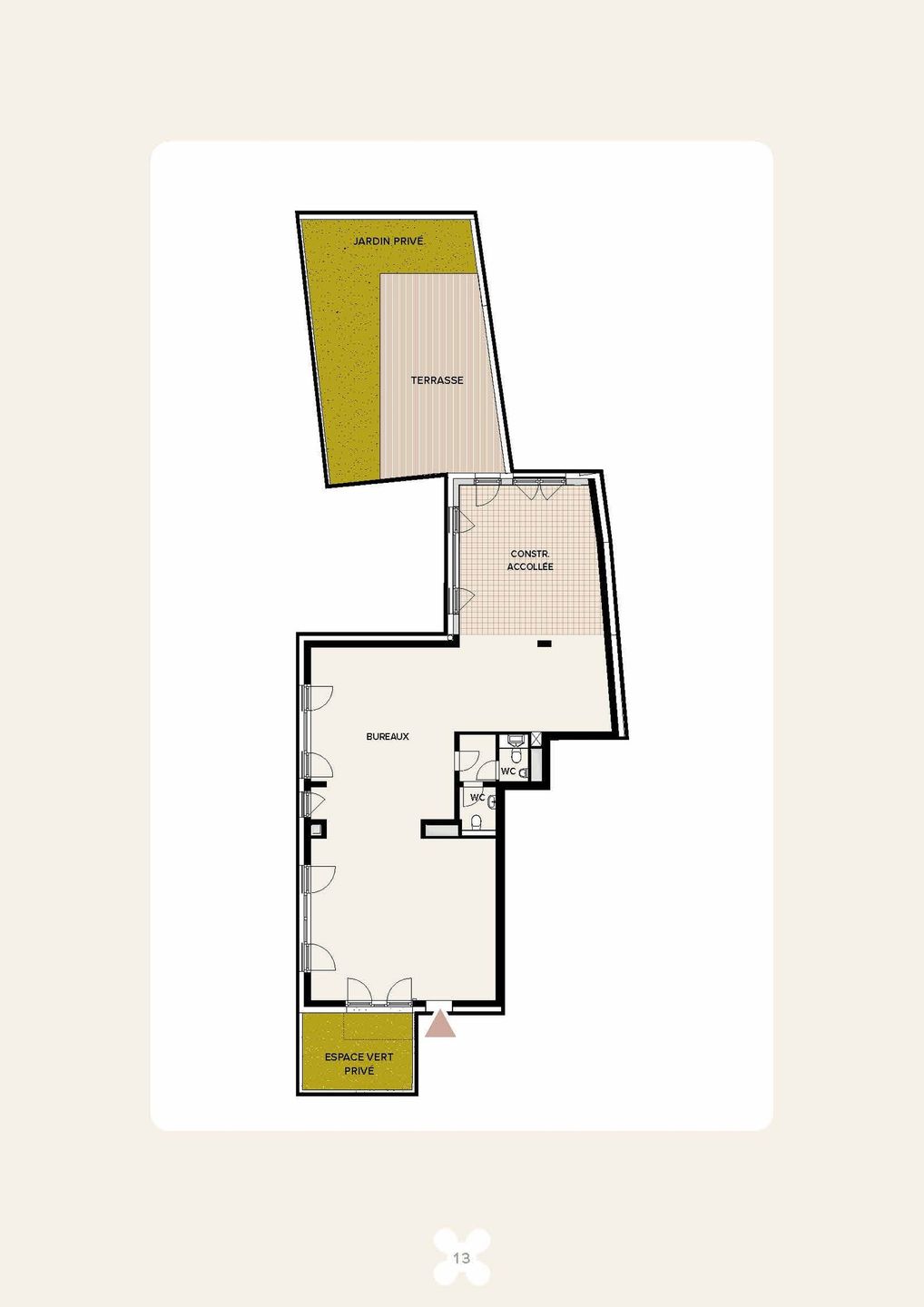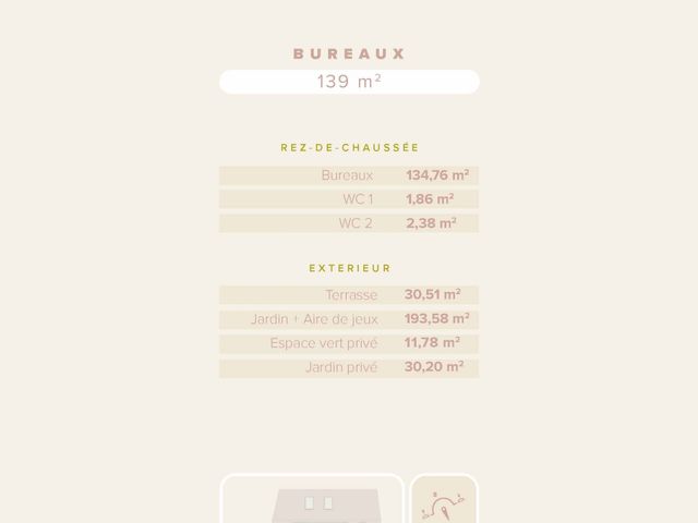 En plus de pouvoir profiter de l'espace vert arboré et aire de jeux communs à la résidence, vos bureaux possèdent une terrasse et un jardin privés, d'une trentaine de m2 chacun. Enfin, le bien est complété par deux wc séparés.