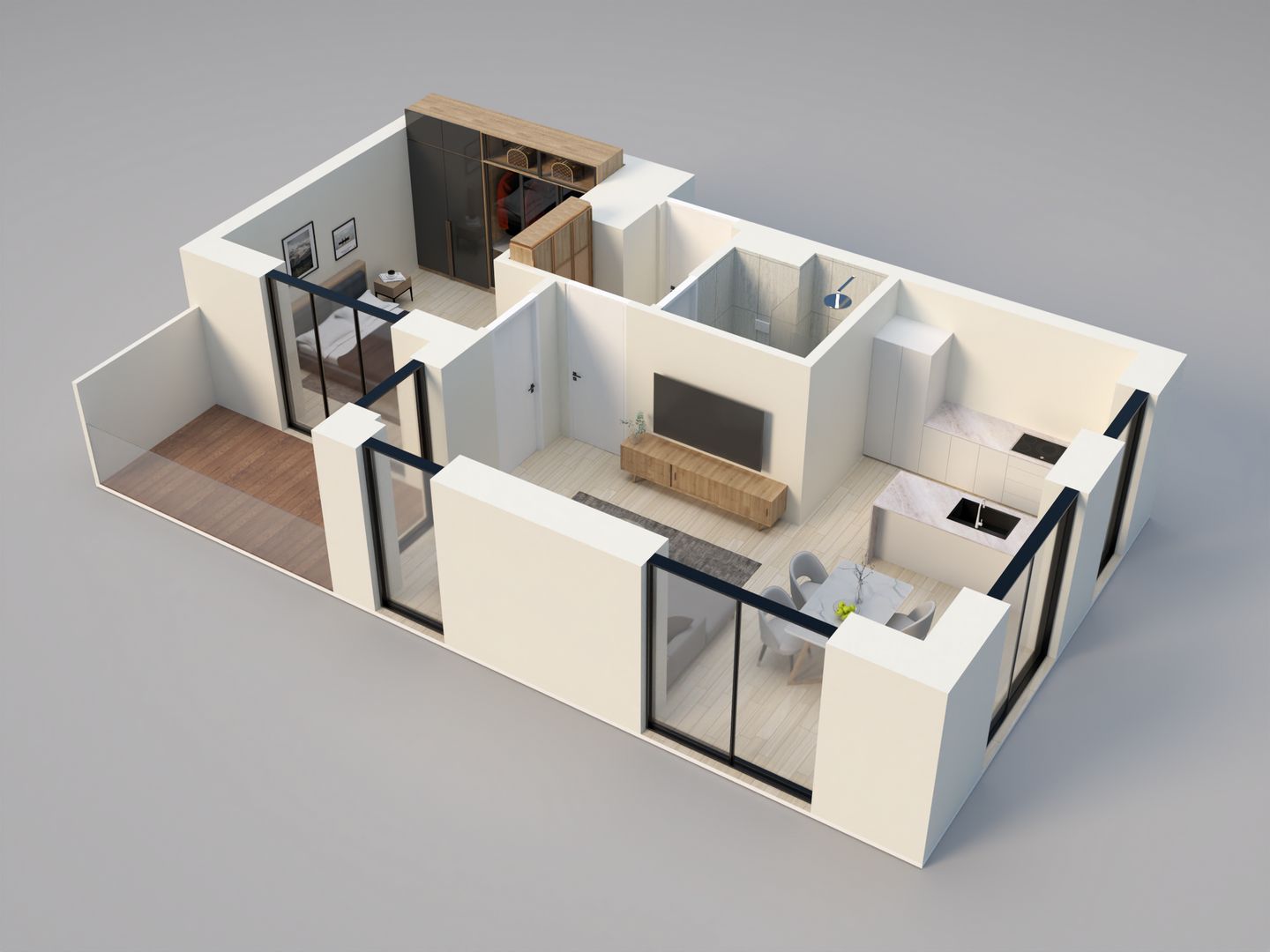 – un séjour/cuisine